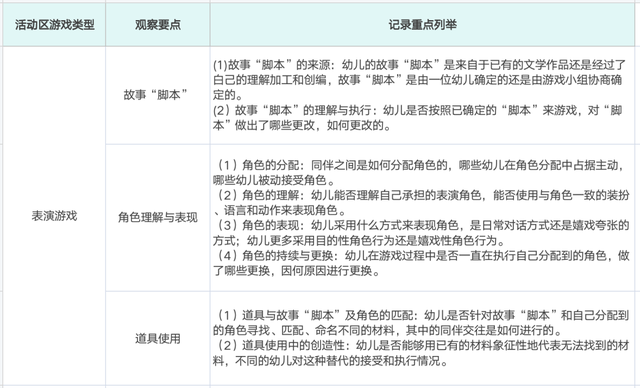 表演区游戏观察要点及记录重点列举