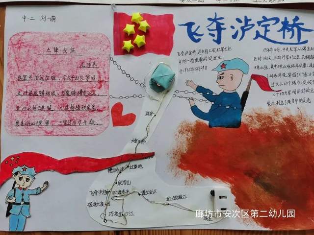老师们通过环境创设和主题教育活动,引导孩子们对长征展开积极的探索,采用视频、图片、手工、听长征故事等形式,让孩子们重温长征历史,感悟长征精神,在孩子们心中种下一棵热爱祖国、勇于奋斗、感恩奉献的红心苗。